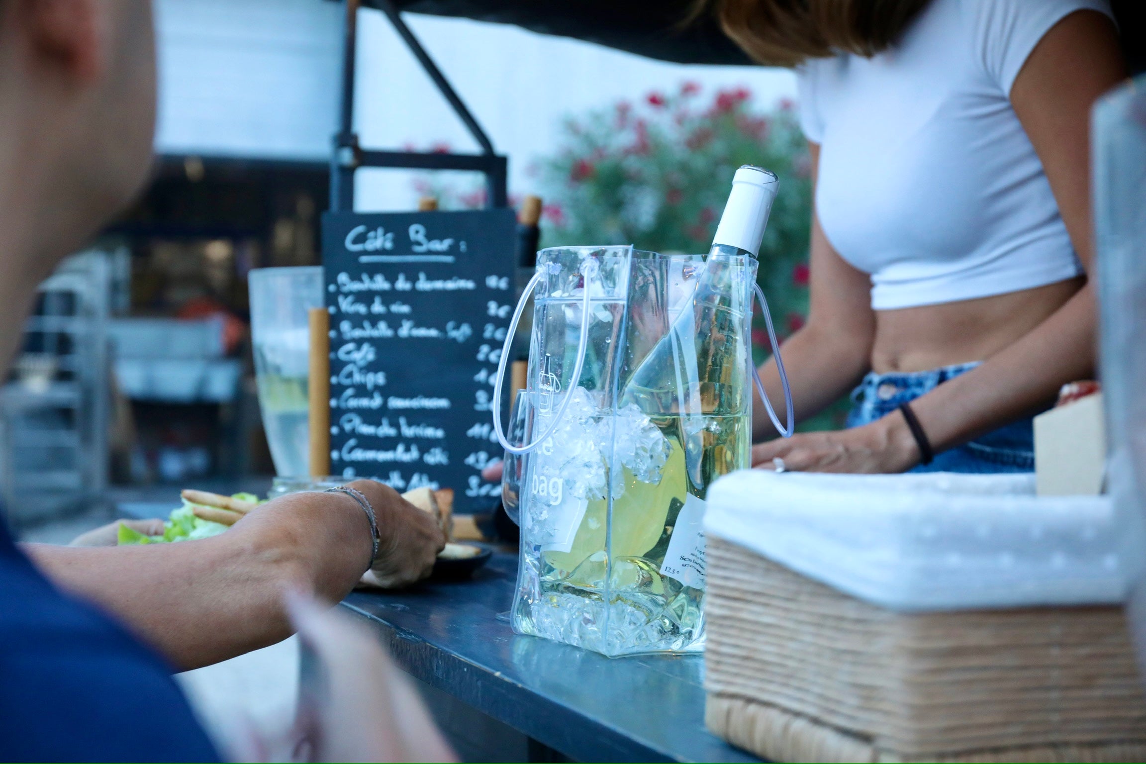 Ambiance musicale et conviviale au coucher du soleil.